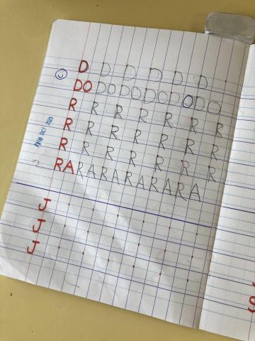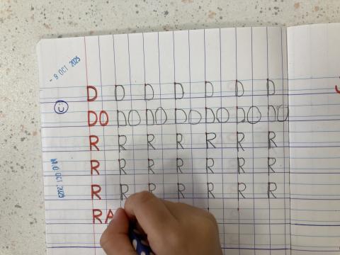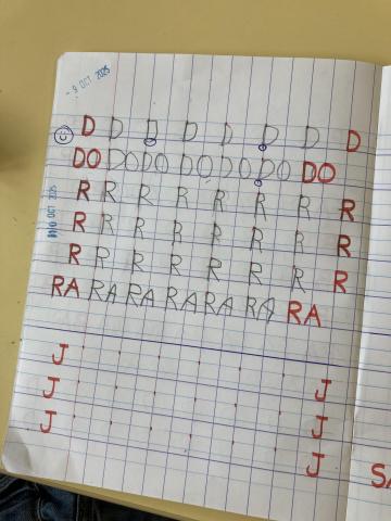 Cet après-midi, après la photo de classe et les photos individuelles, nous avons fait l'écriture du R et de "RA". On dit [R et A, RA]:
