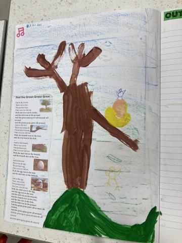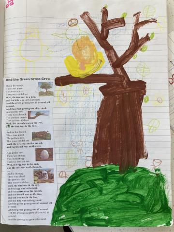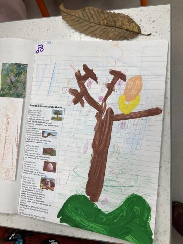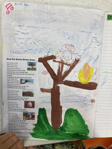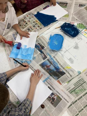 Quelques activités de la journée: les élèves ont fait de la peinture au rouleau en autonomie, puis ils ont terminé la décoration de la chanson dans le cahier de vie; ils ont illustré leur après-midi classe nature d'hier et ils ont collé les photos et écrit les membres de leur famille.