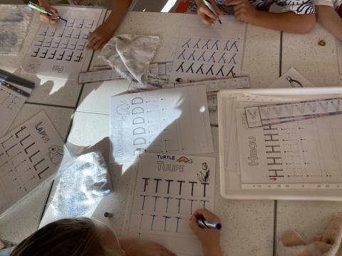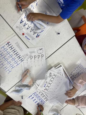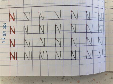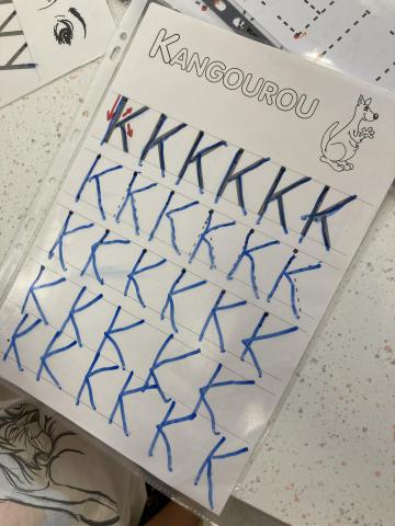 Graphisme: écrire les lettres de l'alphabet en MAJUSCULES en partant bien d'en haut et les nommer.