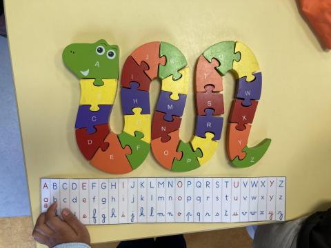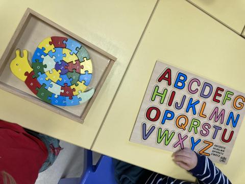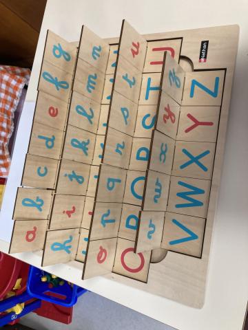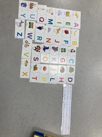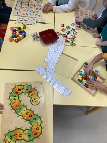 Atelier Alphabet avec divers jeux et puzzles pour travailler les lettres en MAJ et script: