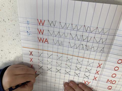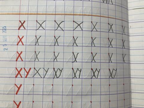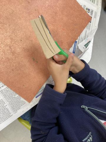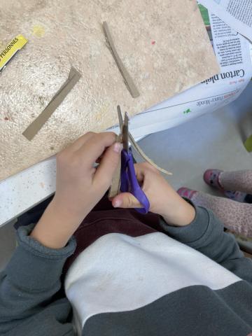 Atelier découpage pour vérifier la tenue du ciseau et le suivi des traits: