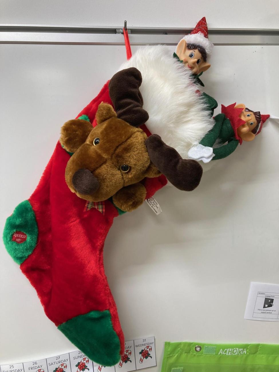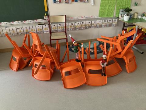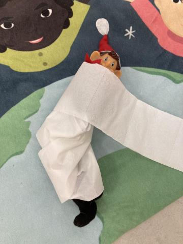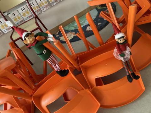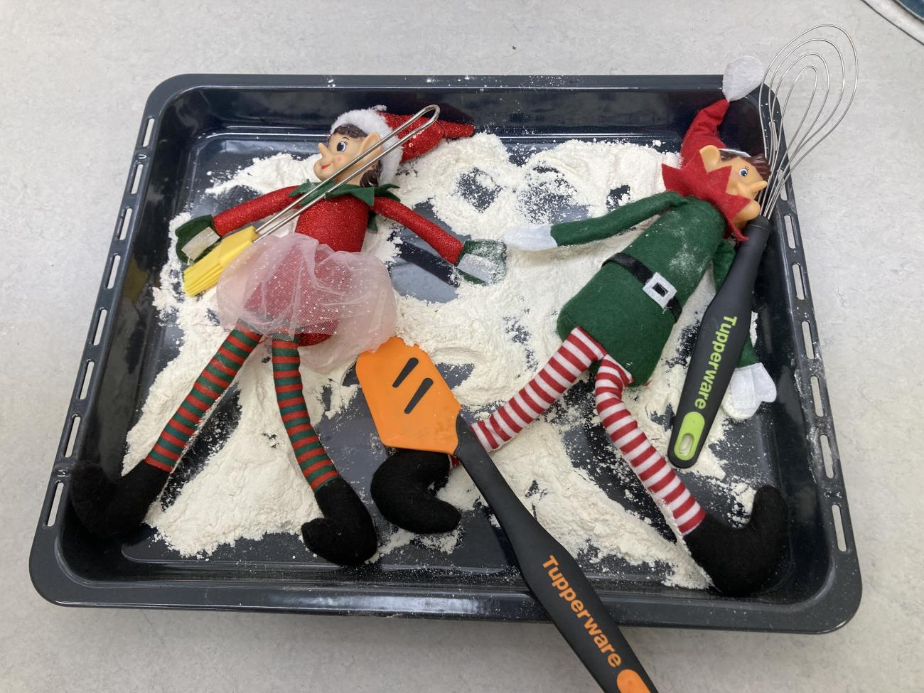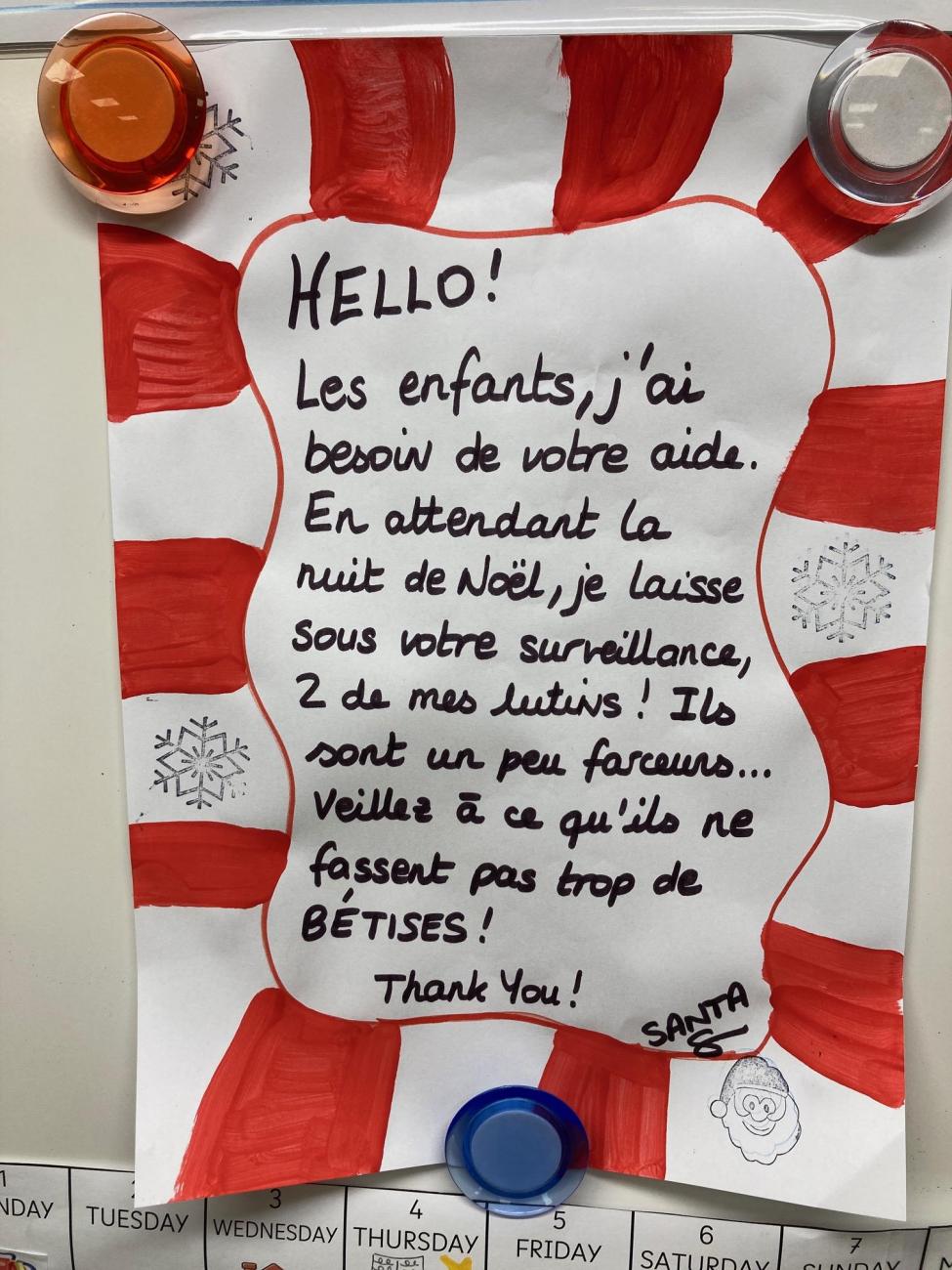 Elves on the shelf! Ce matin, nous avons découvert 2 lutins avec une lettre... Farce de mardi 2 déc: Farce de jeudi 4 déc: Farce de vendredi 5 déc: On a dû les mettre dehors car ils étaient tout sale de farine ;)