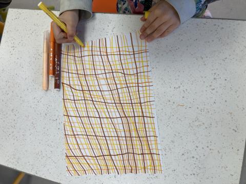 Ce matin, nous avons terminé de décorer nos petites couronnes en dessinant des petits graphismes en respectant un rythme.