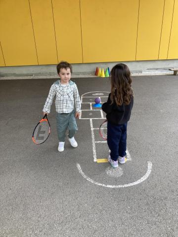 Ce matin: 3ème séance de l'initiation au tennis. Nous retrouverons Olivier et Régis après les vacances.