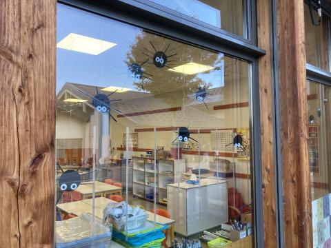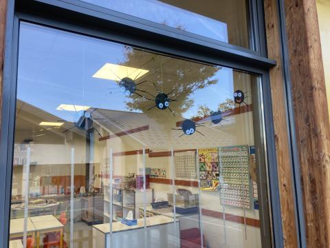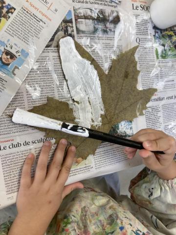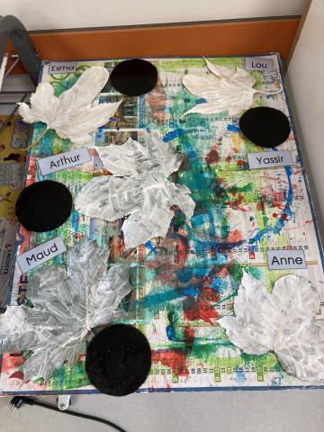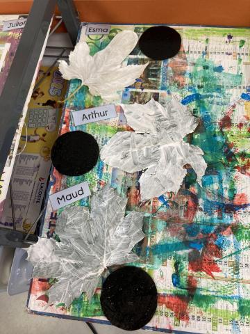 Dans la classe, nous avons créé des GHOSTS en feuilles d'arbres et des SPIDERS en carton: