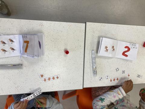 Puis nous avons terminé notre COUNTING BOOK en collant les constellations de dés et de doigts: