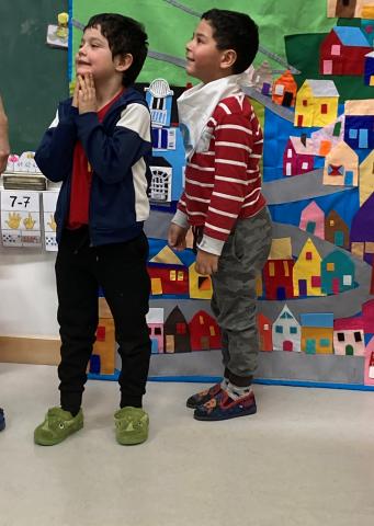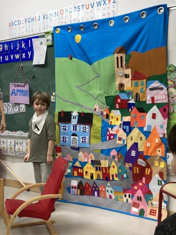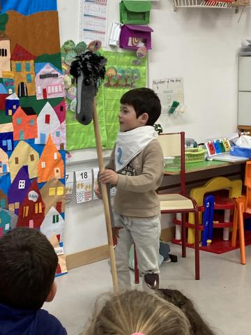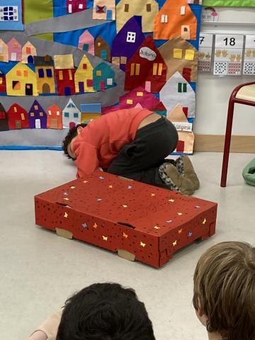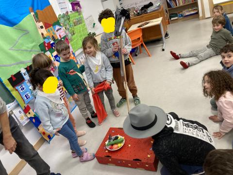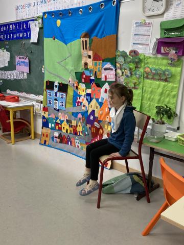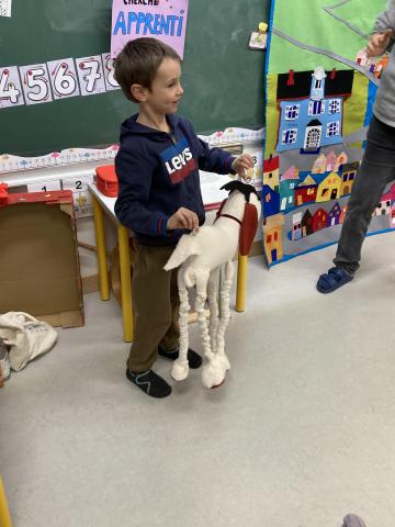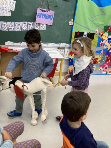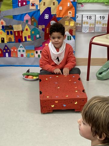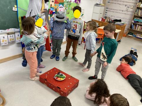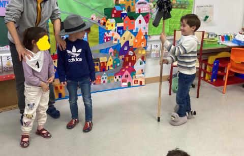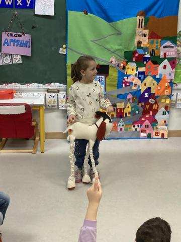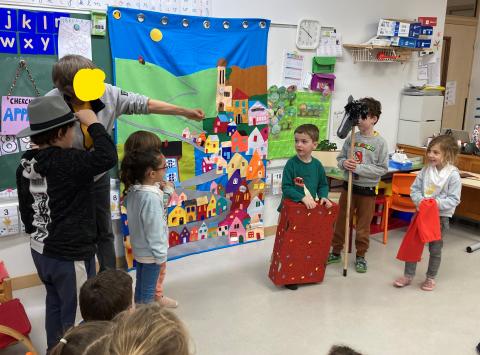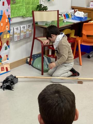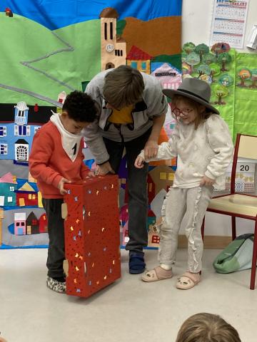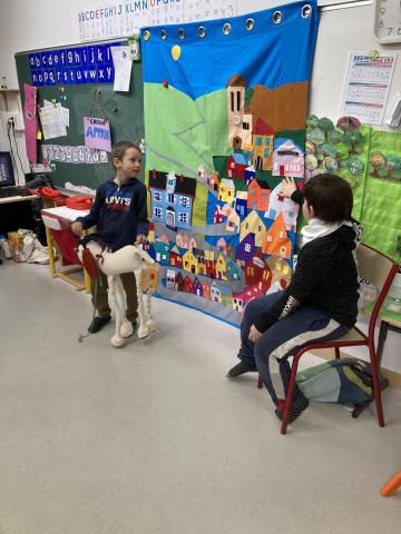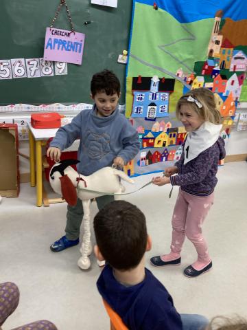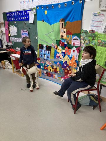 Après la récréation, la mamie de Clara est venue nous faire un spectacle interactif où les enfants qui le souhaitaient ont pu jouer des rôles: