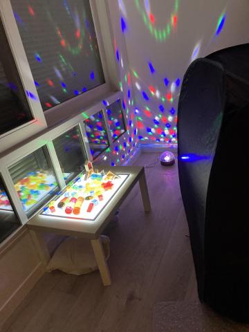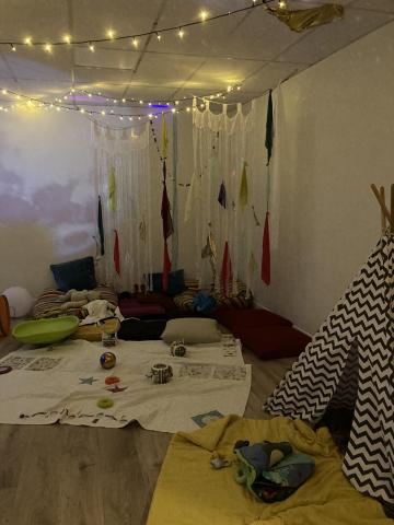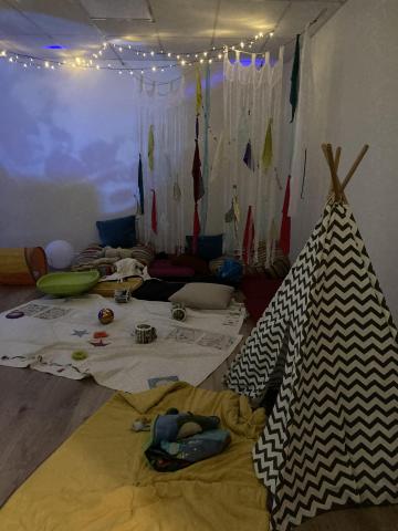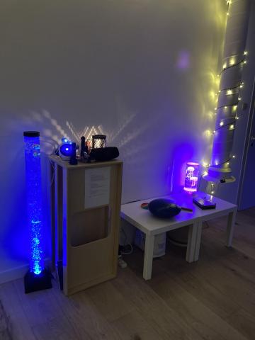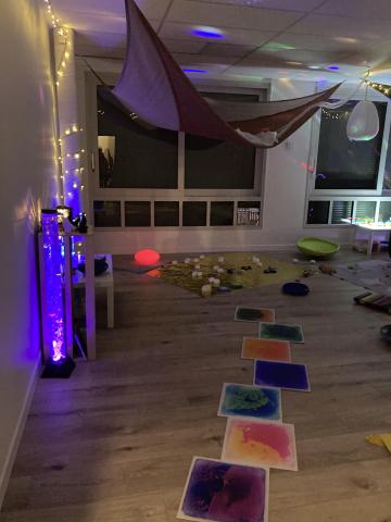 Ce matin, par groupe de 8, les élèves sont allés passer 30 minutes dans une salle de l'école où tout avait été pensé pour qu'ils soient dans un espace calme et adapté. Un espace SNOEZELEN: