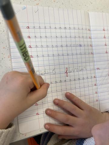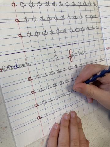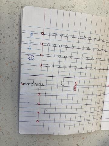 Cet après-midi, nous avons écrit le "a" dans le cahier d’écriture, puis nous avons fait les cartables.
