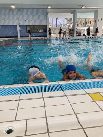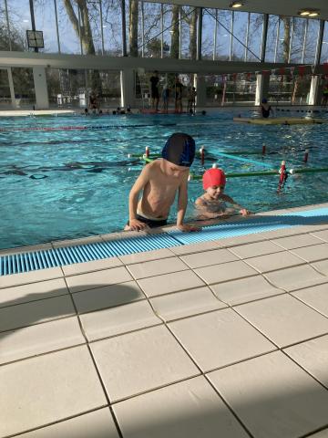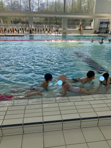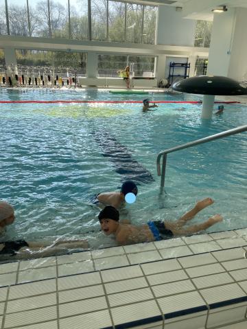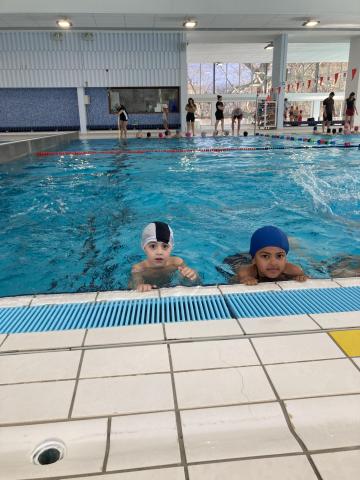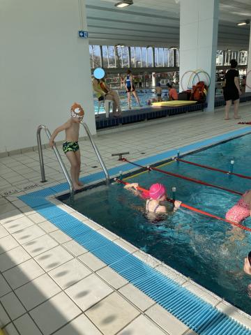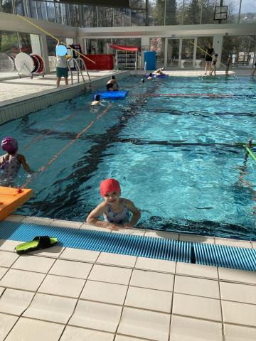 2ème séance de natation ce matin. Nous étions prêtes à rentrer dans l'eau pour 9h05 et sommes revenus pour 10h20 à l'école.
