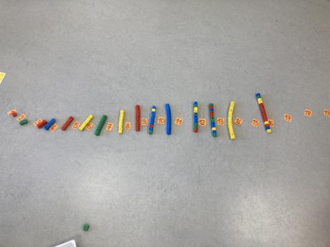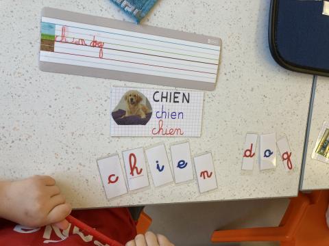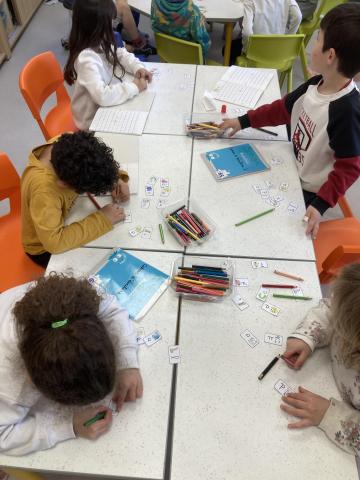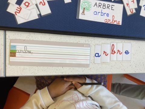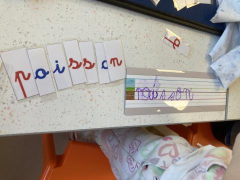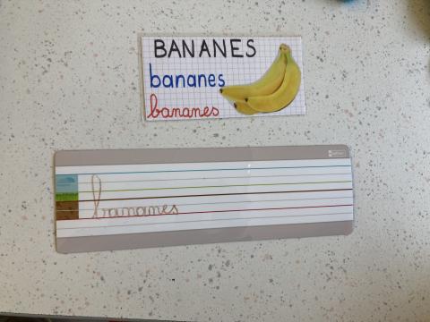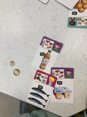Travail sur les lettres cursives, jeu de la marchande et travail sur les alphas en fin d'après-midi et construction de collections associées à un nombre (entre 1 et 20):