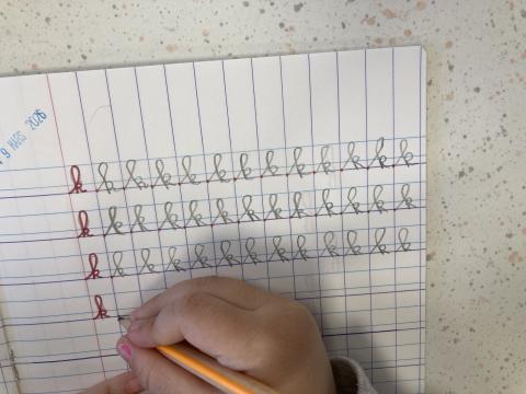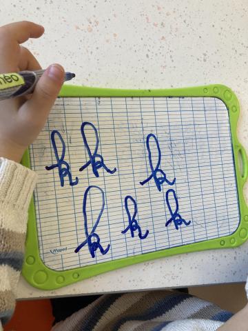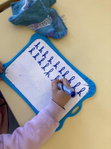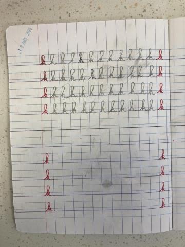 Cet après-midi, nous avons écrit la lettre "k" sur l'ardoise puis sur le cahier: