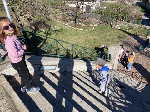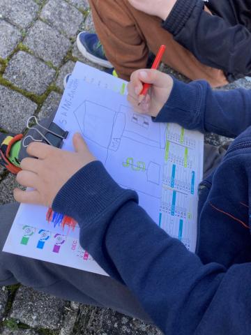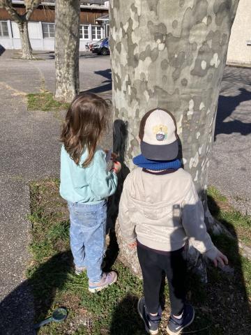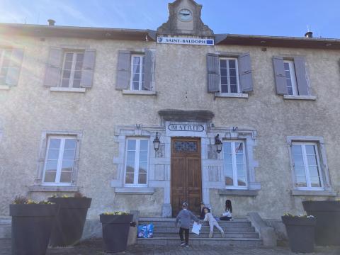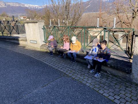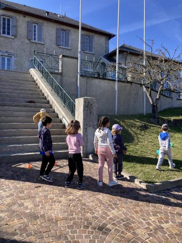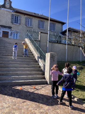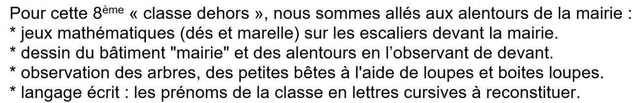 Cet après-midi, classe dehors devant et derrière la mairie: