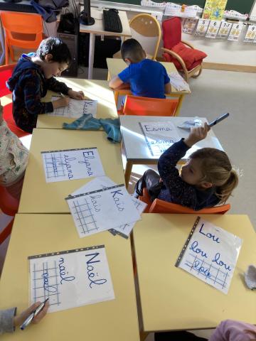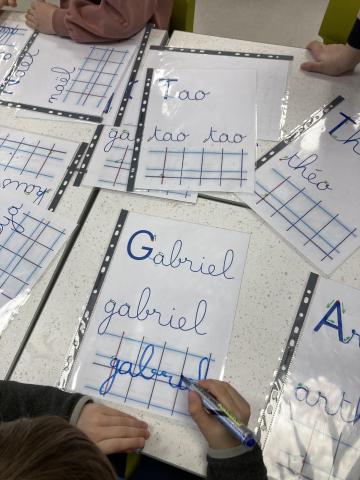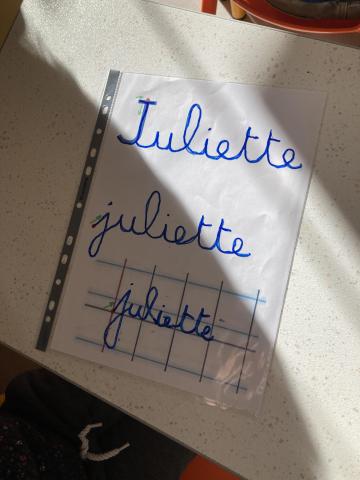 Travail en graphisme avec l'écriture du prénom en attaché:
