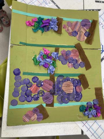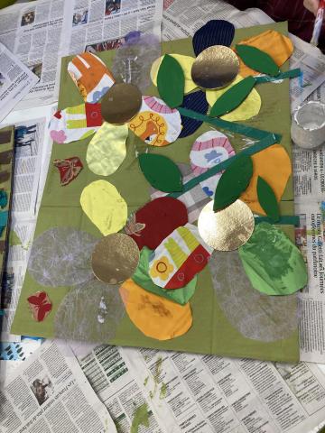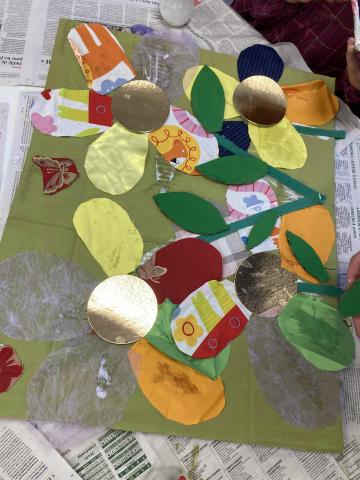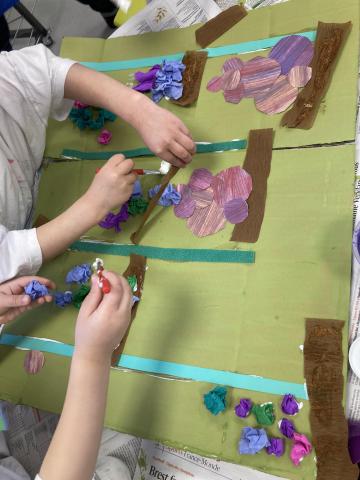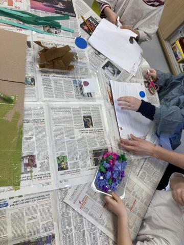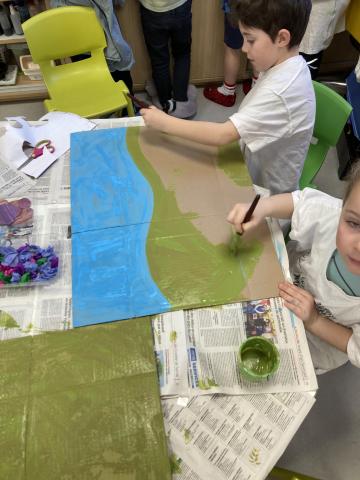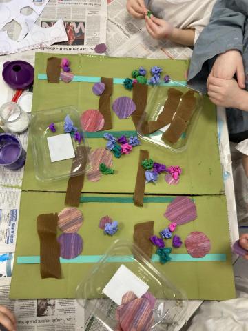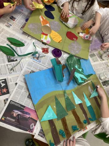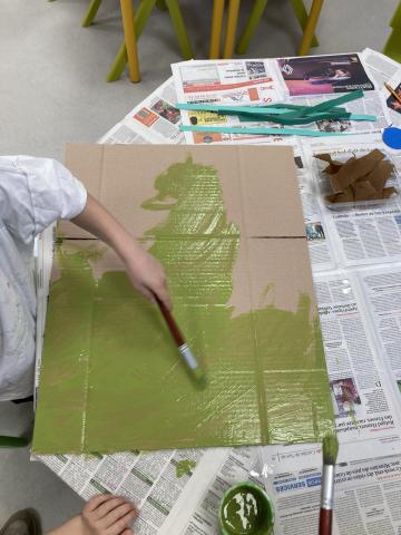 Ce matin, un atelier arts où les enfants ont décoré les panneaux du futur TOTEM Carnaval de vendredi 6 mars: