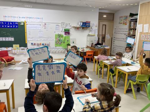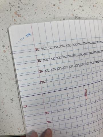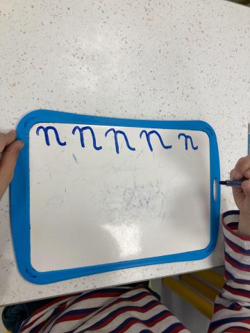Puis, écriture du "n" en attaché sur l'ardoise et dans le cahier: