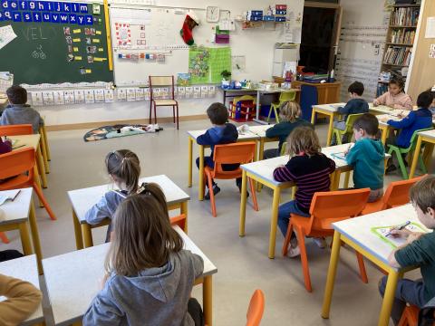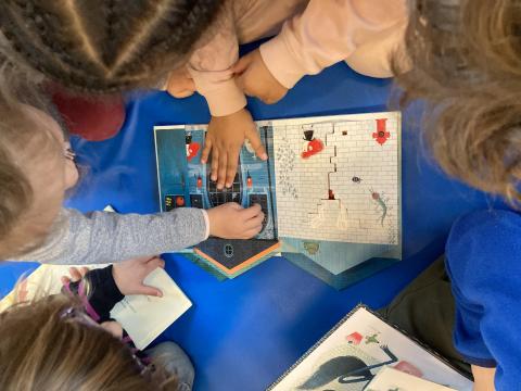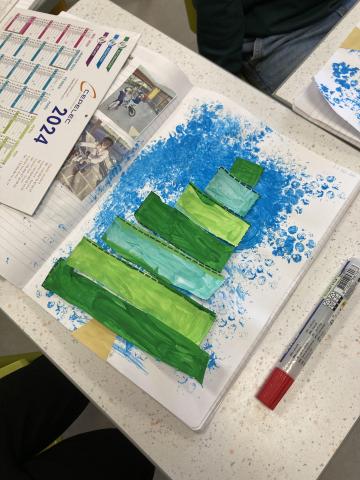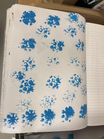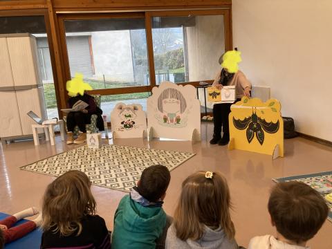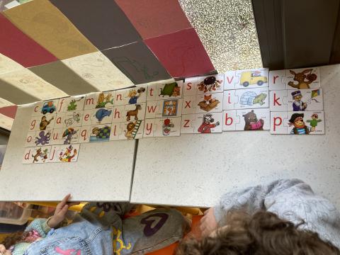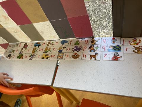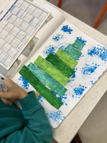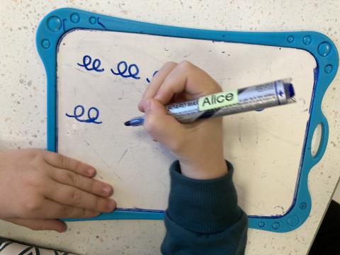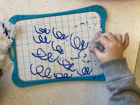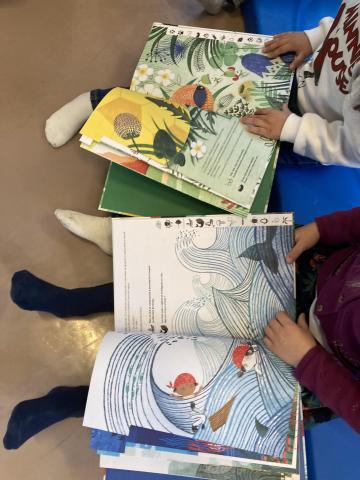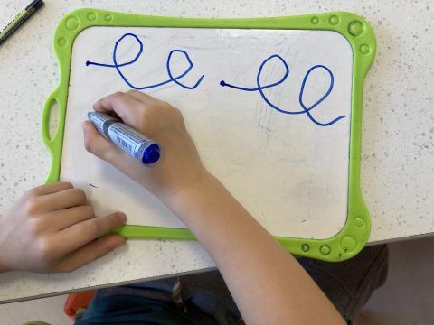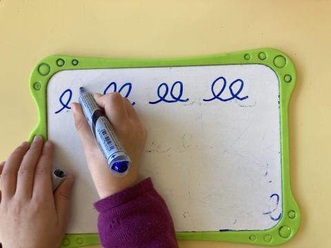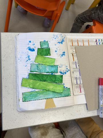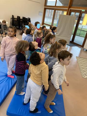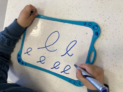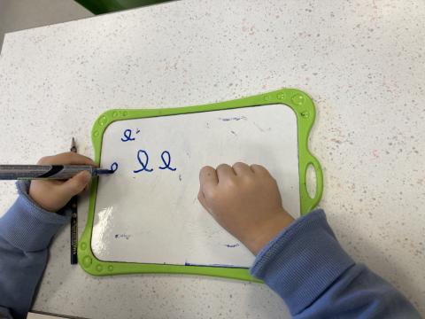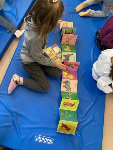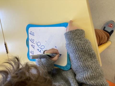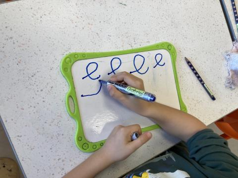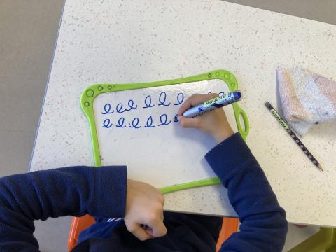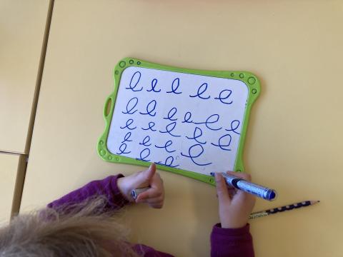 Ce matin, petit spectacle à la bibliothèque: puis,entre autre, des activités en maths: en langage écrit: en motricité fine (découpage) et en art (collage l'après-midi): et écriture sur ardoise et dans le cahier: l'enchainement de 2 boucles: