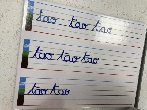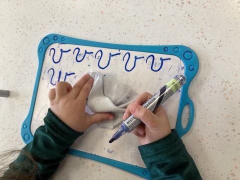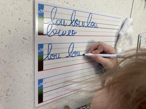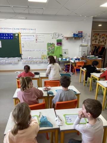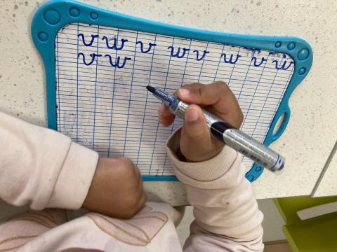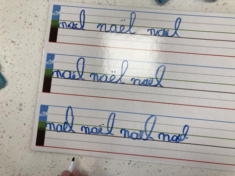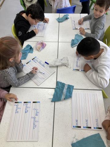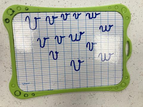 Nous avons eu le temps de commencer l'écriture du "v" et "w" sur l'ardoise, nous ferons dans le cahier cet après-midi.