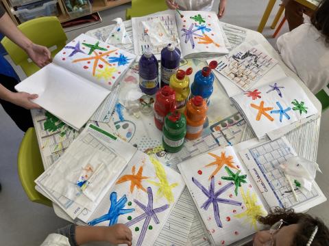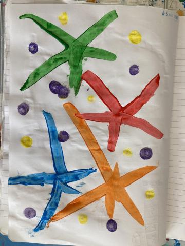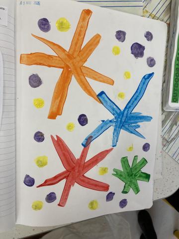 Et un dernier atelier en ARTS pour décorer la page de "MARCH" dans le cahier de vie: feux d'artifice!