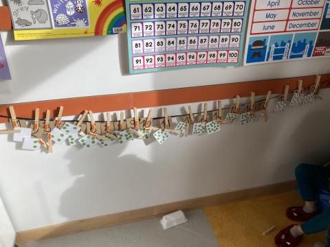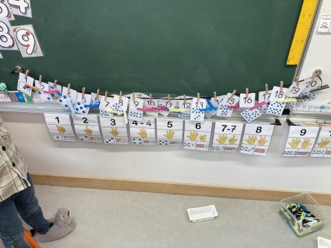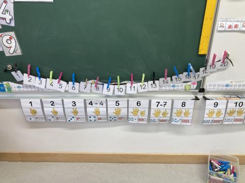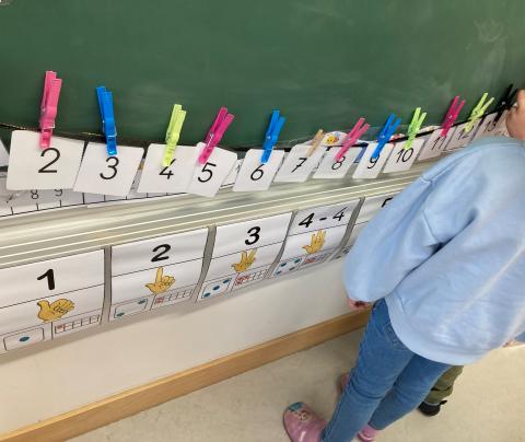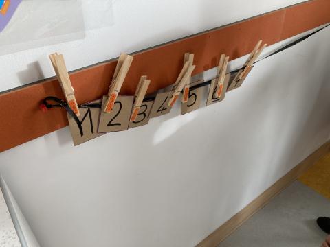 Un travail en mathématiques sur la frise numérique avec les nombres en chiffres et l'association des quantités: