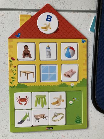 Un atelier en phonologie: associer des images avec le son correspondant (il doit au moins se trouver dans le mot):