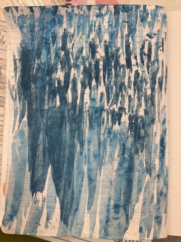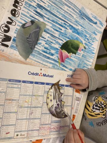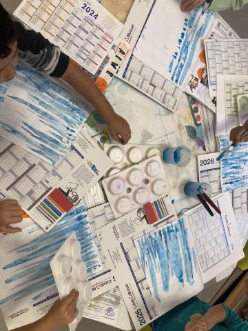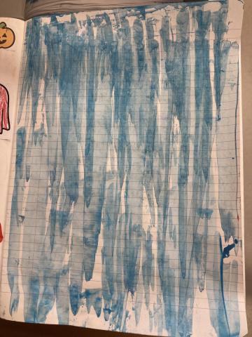 Et un atelier en art où il fallait faire des gouttes de peinture, puis les "racler" pour créer de la pluie (suite cet après-midi et demain):