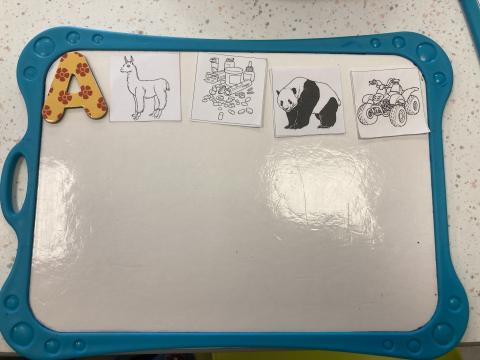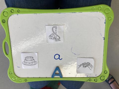 Puis, en phonologie, nous avons essayé de travailler sur le phonème et de trouver des images correspondant au son. Sons voyelles pour l'instant (A, O, U, I et OU, EN, ON selon les élèves):