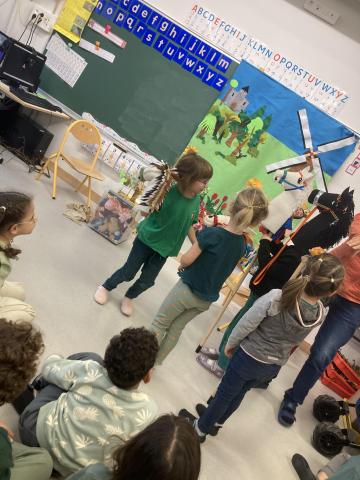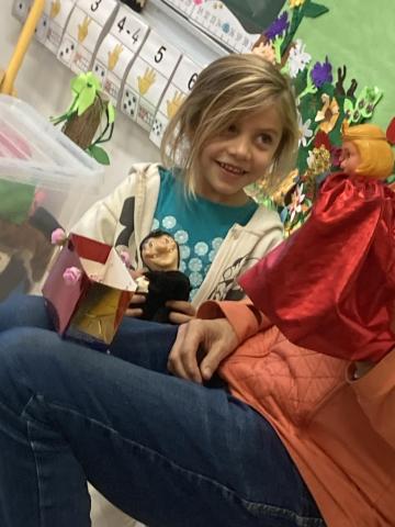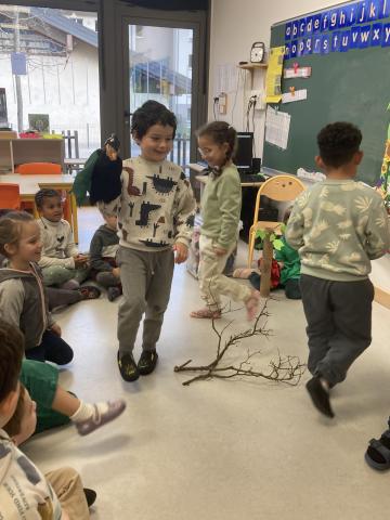 Puis, Oma, la mamie de Clara est venue nous raconter l'histoire de BIMBABOULOR avec des marionnettes en interaction avec les enfants. Merci à elle!!